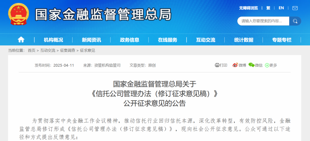 2025年4月,《信托公司管理办法》重新修订,强调加强信托业务全流程管理。