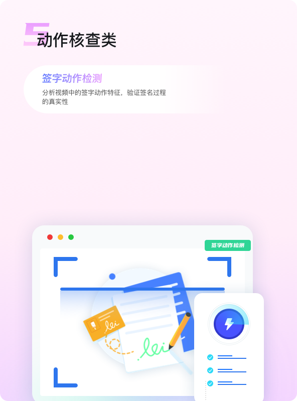 个人贷款:响应《个人贷款管理办法》中 “20万元以上贷款需当面签约并双录” 的规定,提供远程视频面谈功能,支持客户经理与客户同屏交互,集成活体检测和签字动作检测功能,确保签约过程规范。