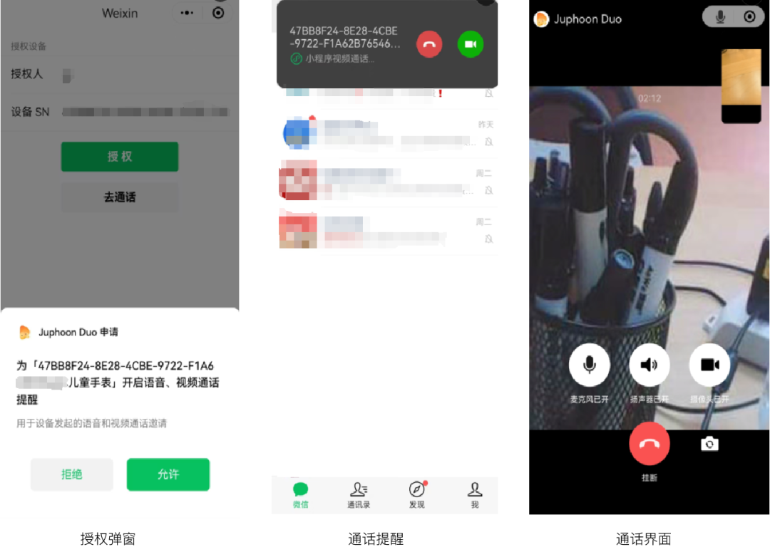 当设备(如智能手表、门禁机、养老设备等硬件)发起音视频通话时,手机端用户无需打开微信,即可收到音视频通话弹窗提醒,避免漏接关键通话。
